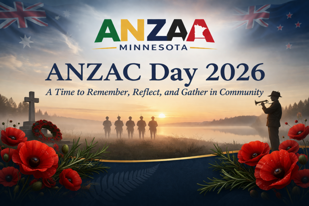 | April 26th 2026Bearpath Country Club 18100 Bearpath Trail, Eden Prairie Please RSVP anzaainfo@gmail.com The ANZAA AGM starts at 11:30 ANZAC Day starting at noonService 1:30pm Day Concludes 2:30pm |